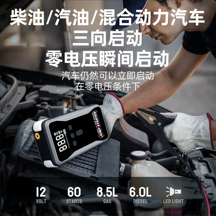 汽车应急启动电源12v24v车载电瓶搭电宝大容量强起大货车打火神器