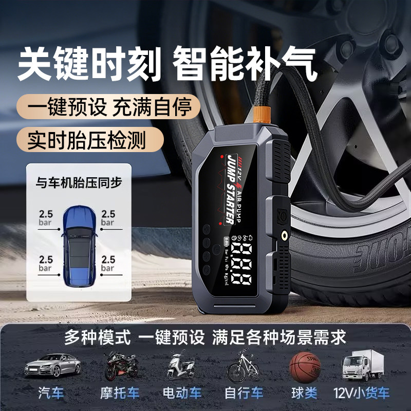 车载充气泵电动汽车应急启动搭电自行车无线打气筒轮胎高压打气泵