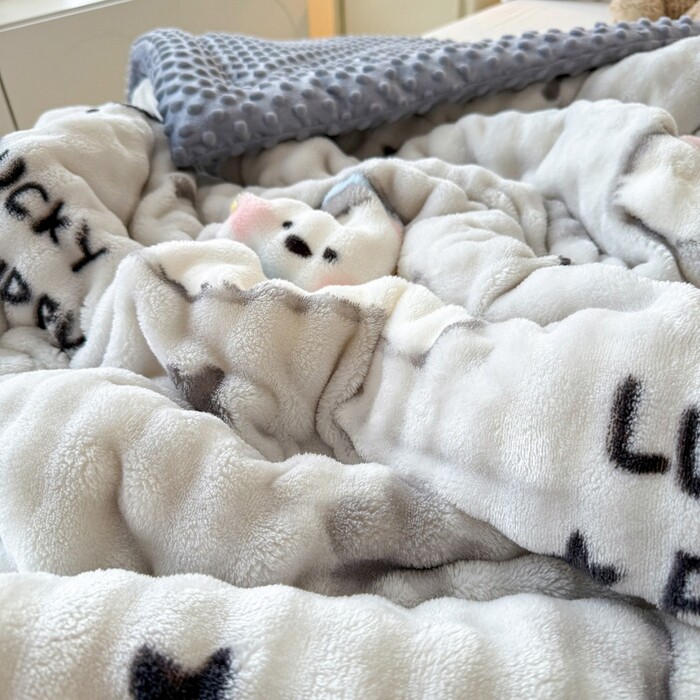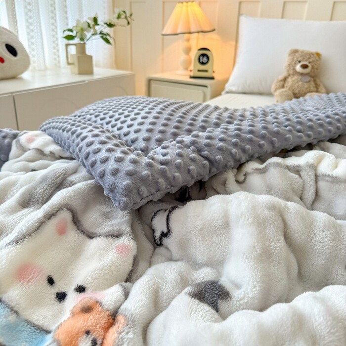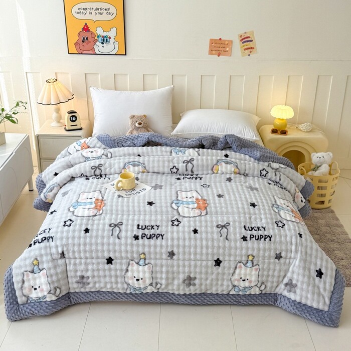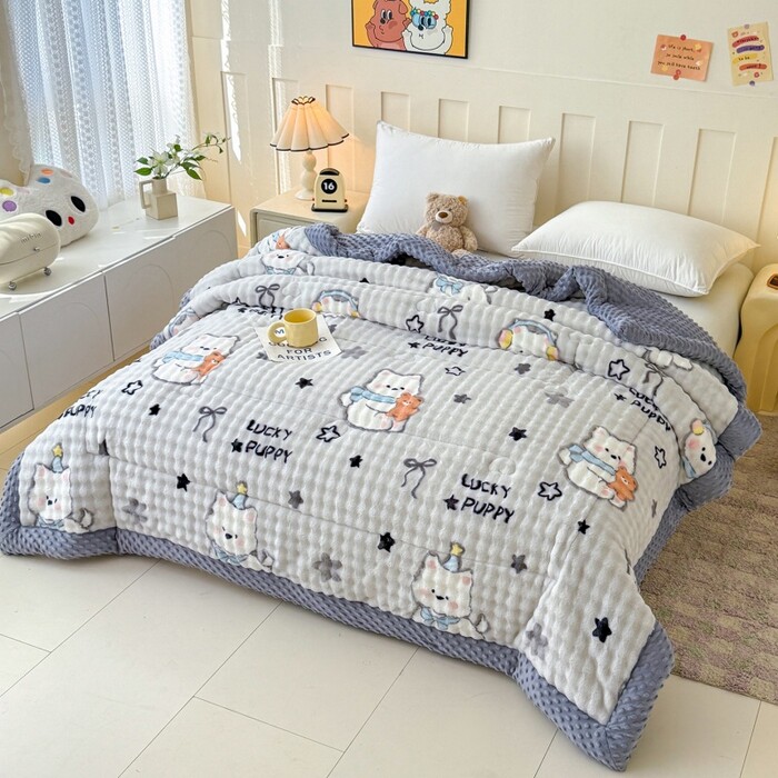 獭兔绒牛奶绒三层夹棉加厚豆豆棉被子被芯毛绒冬季保暖加厚绗缝