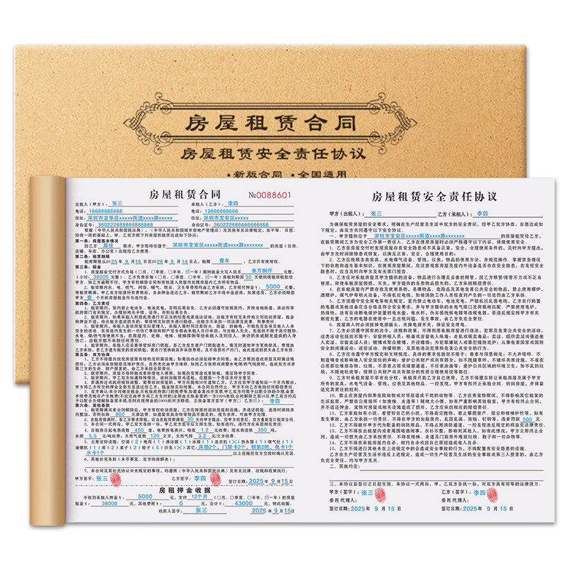 房屋租赁协议房东版2026年新版安全责任个人出租房合约书出租屋房子租凭房租水电收租本收据店铺门面租房合同