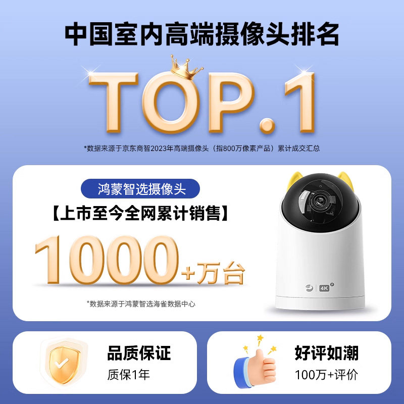 【国家补贴15%】鸿蒙智选4K超高清800万海雀智能摄像头家用室内360度全景夜视无线监控手机远程婴儿宠物摄影