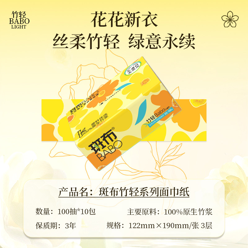 斑布抽纸家用纸抽本色纸巾卫生纸面巾擦手纸实惠装100抽餐巾纸