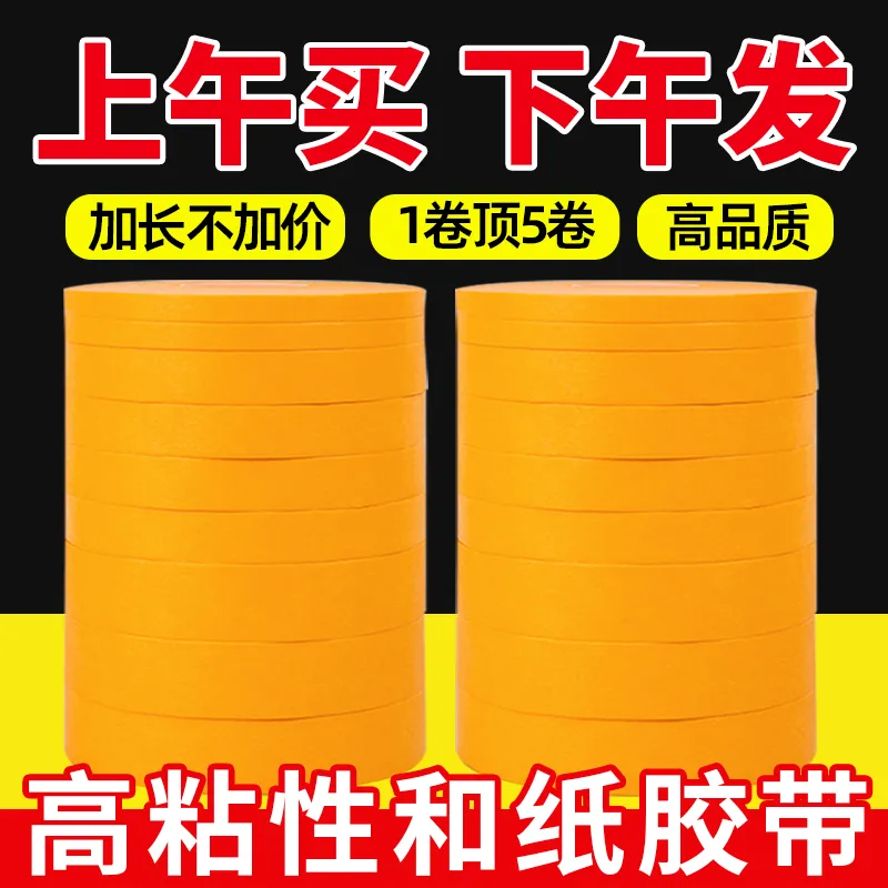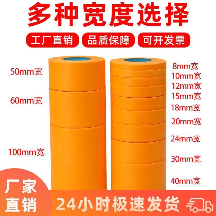 7388黄色和纸美纹胶带外墙水包砂高粘喷漆装修门窗遮蔽分色纸50米