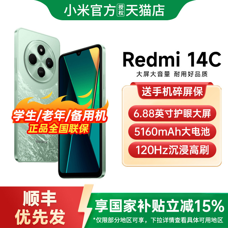 【政府补贴至高15%】Redmi 14C手机全网通小米官方旗舰店手机学生老年备用机老人百元备用工作机红米14c