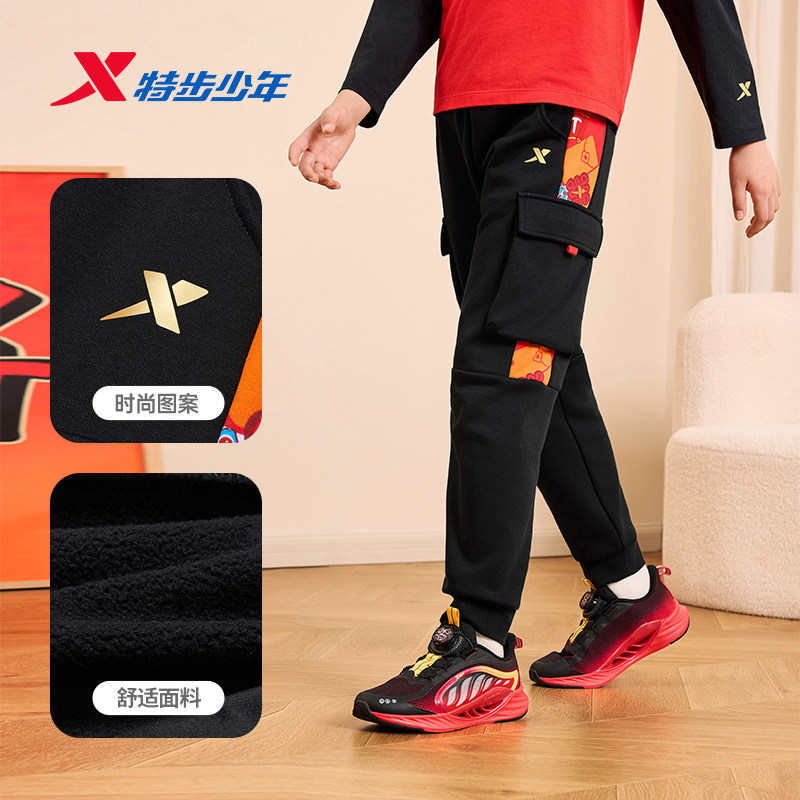 福燈贺岁|特步童装男童女童新年款中大童运动休闲束脚裤针织长裤