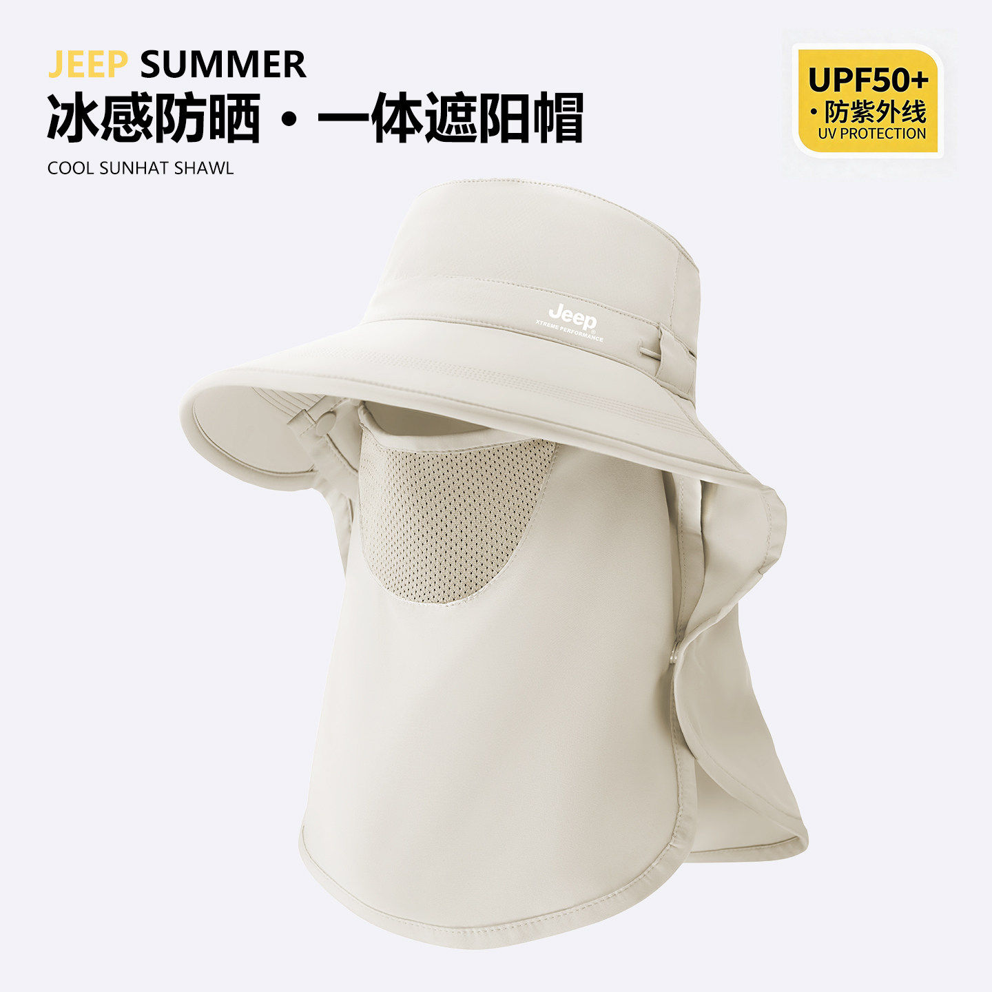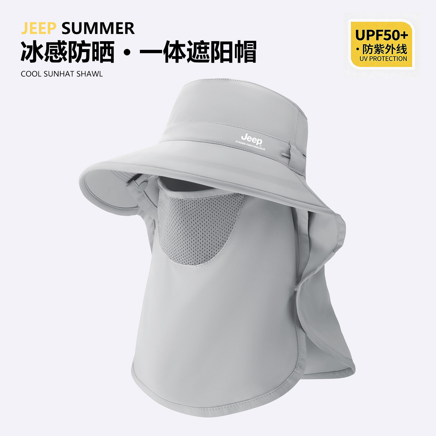 jeep吉普夏季女士面罩防晒披肩渔夫帽户外防紫外线遮阳太阳帽子女
