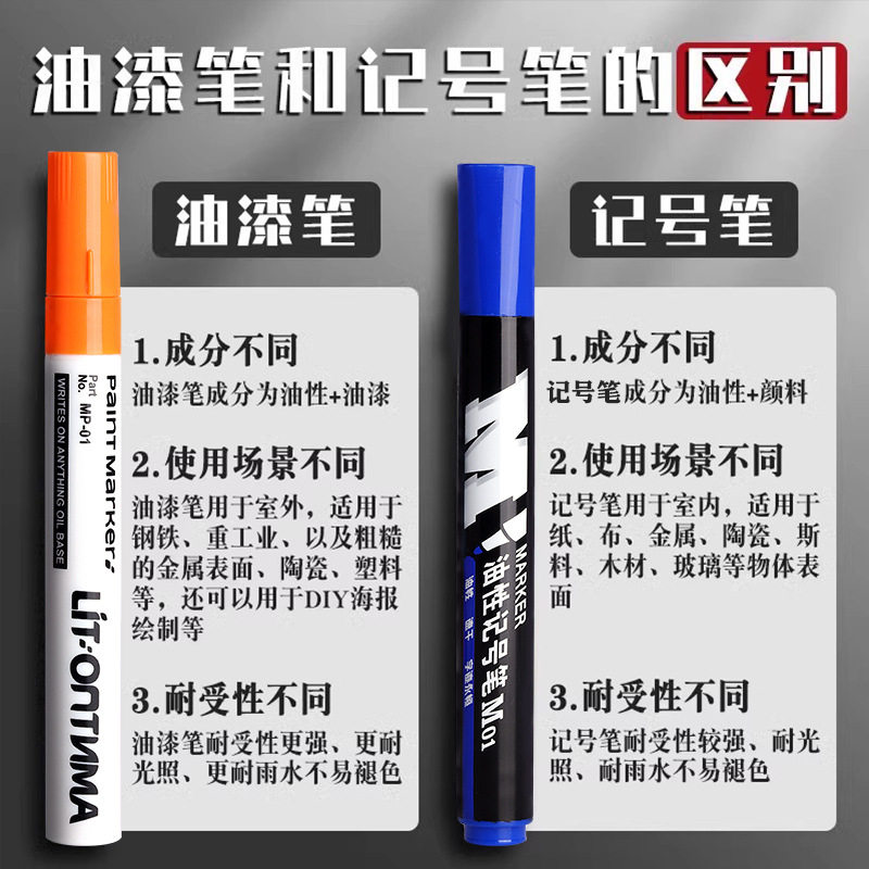 油漆笔白色记号笔防水防油不掉色工业不掉色汽车轮胎专用涂鸦笔油性彩色银色补漆笔黑色红色金色签名笔