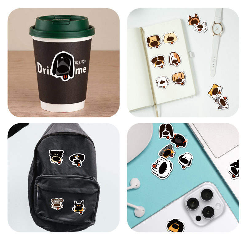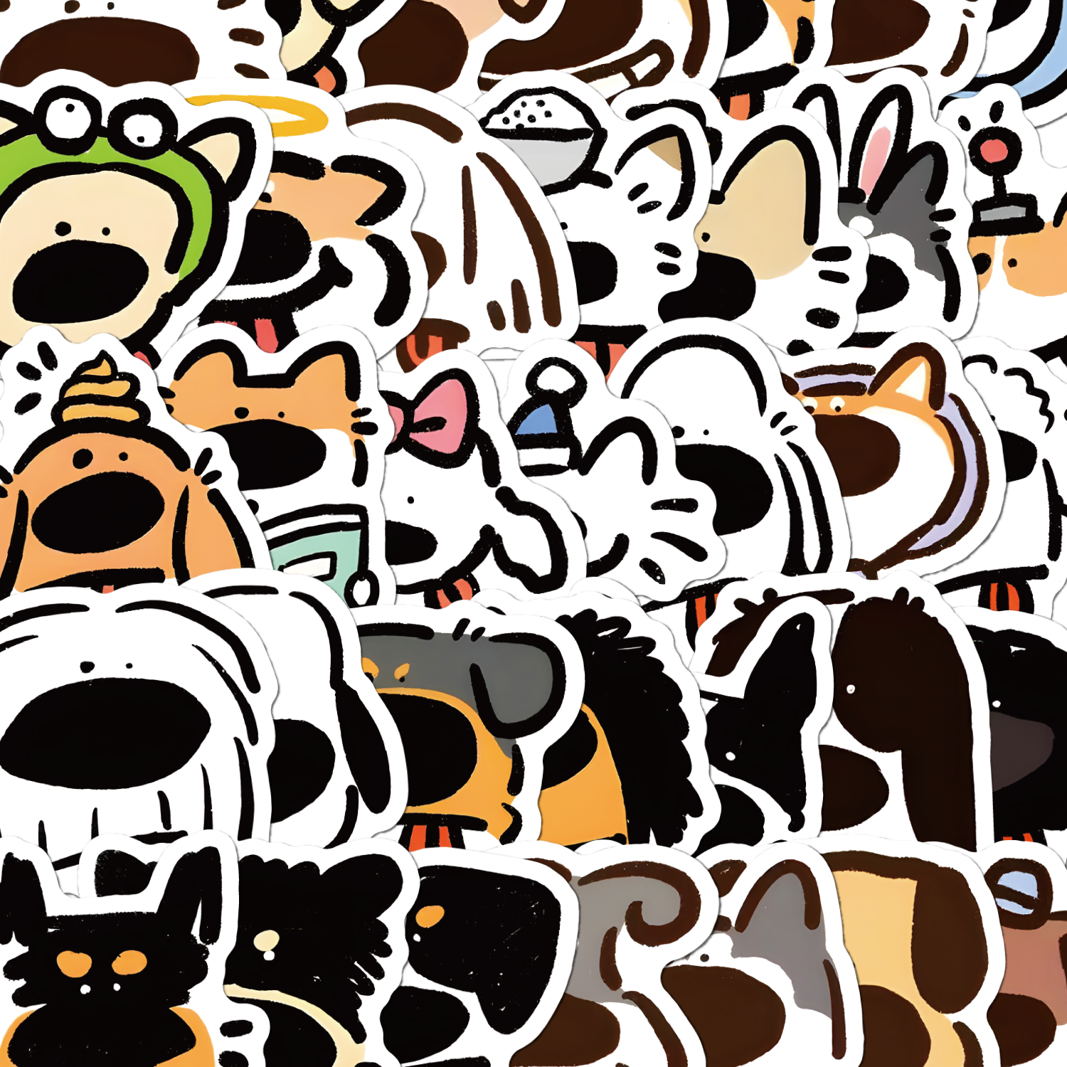 可爱简笔狗头贴纸卡通可爱素材手机壳手账行李箱桌面遮丑防水diy贴画