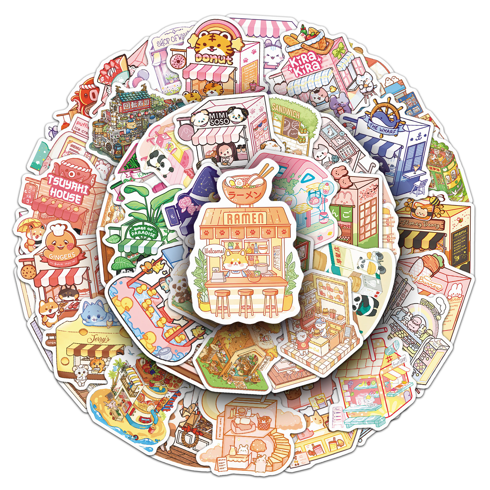 100张动物商店卡通贴纸可爱小兔狗狗店铺萌趣咕卡DIY手账本装饰水杯相册旅行箱笔记本冰箱摩托车吉他iPad贴纸