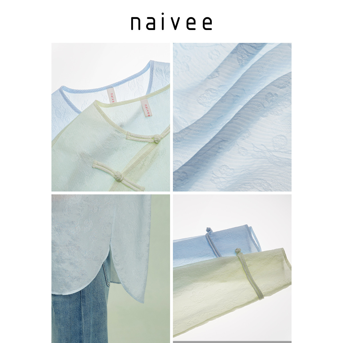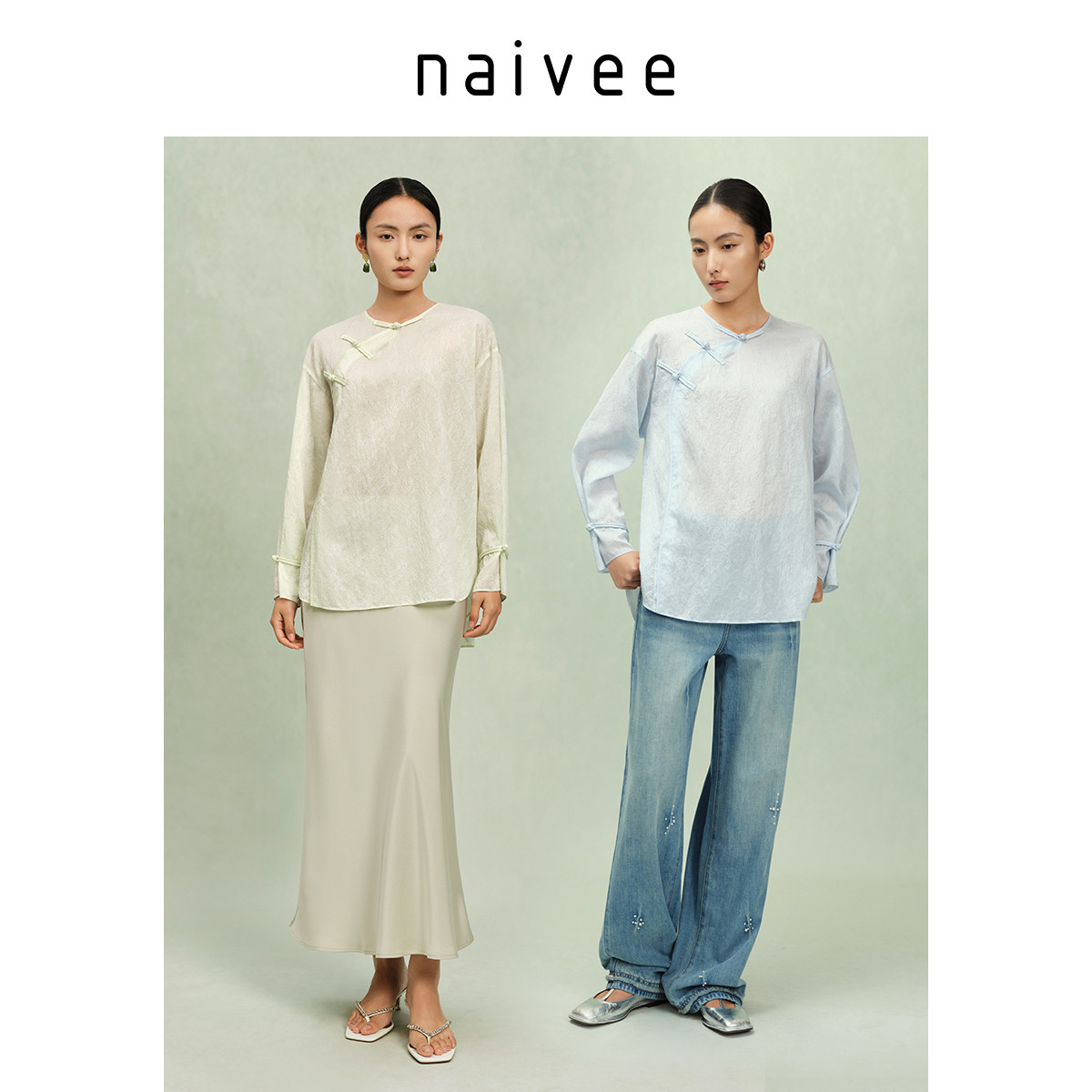 莱赛尔衬衫』naivee纳薇25秋新款新中式盘扣天丝提花长袖上衣女