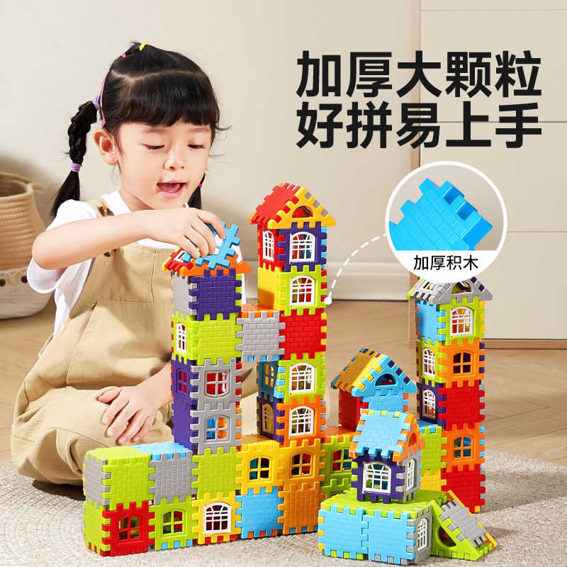乐乐鱼儿童大颗粒搭房子积木拼装玩具男孩益智模型拼图超大尺寸