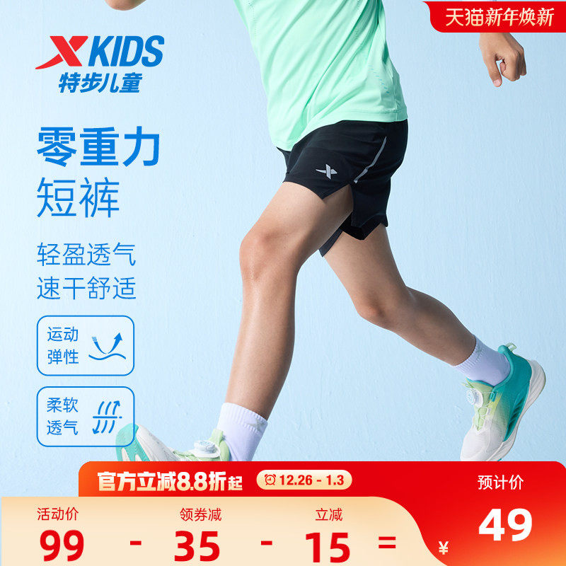 特步童装速干短裤儿童跑步裤2025夏季新款大童运动五分裤薄款裤子