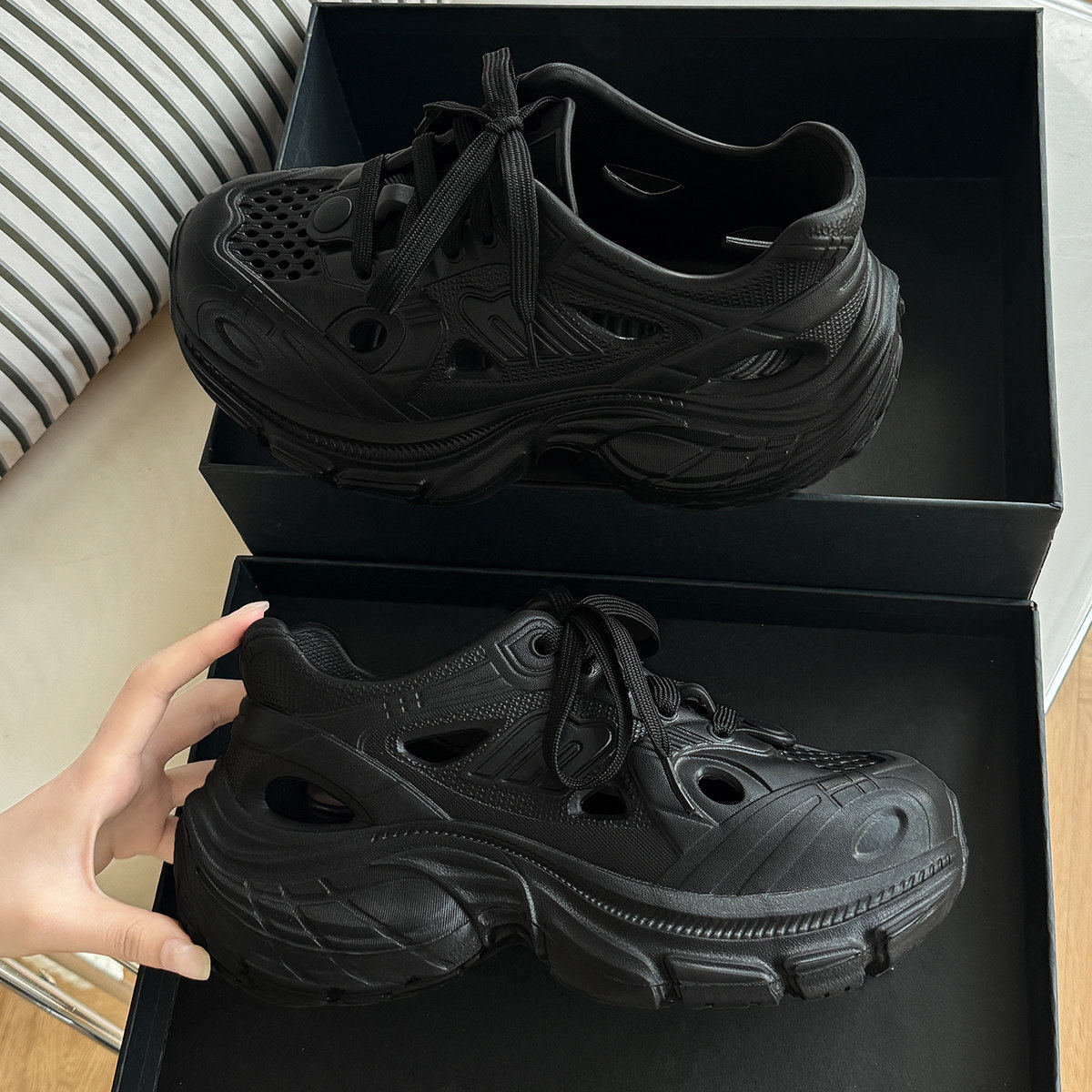 洞洞鞋男士夏季2026新款透气防滑防臭登山溯溪运动凉拖鞋外穿黑色