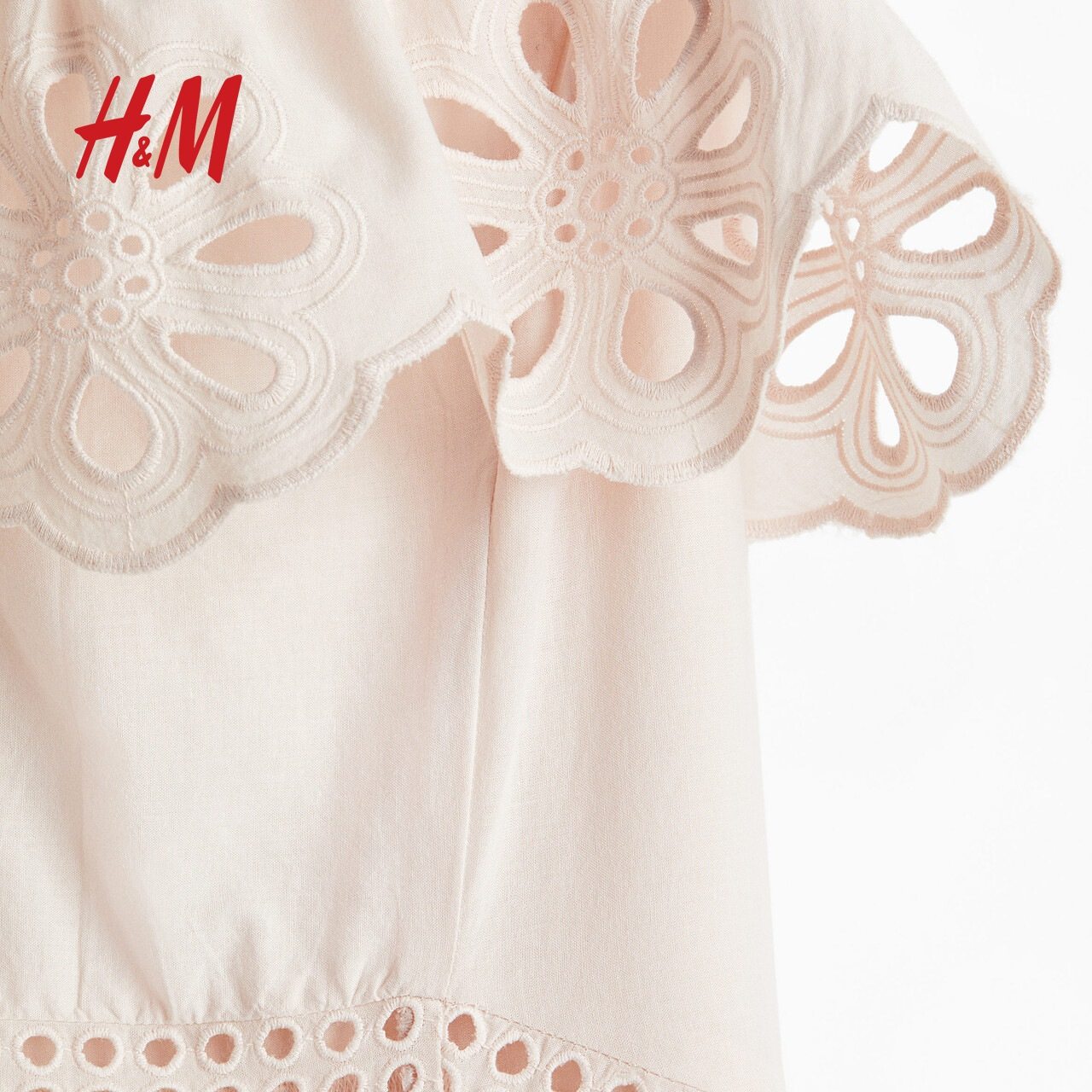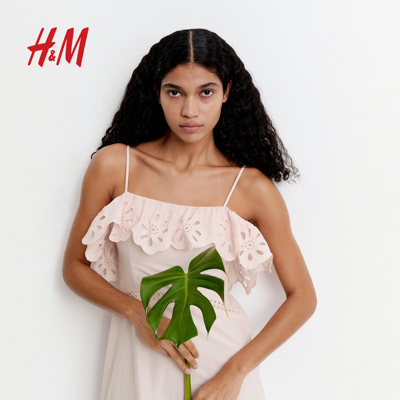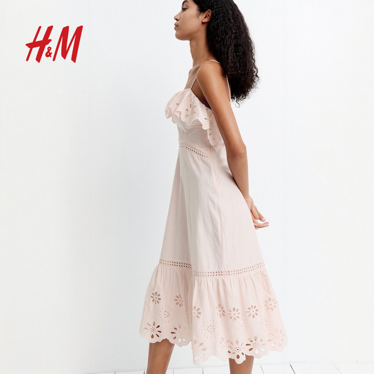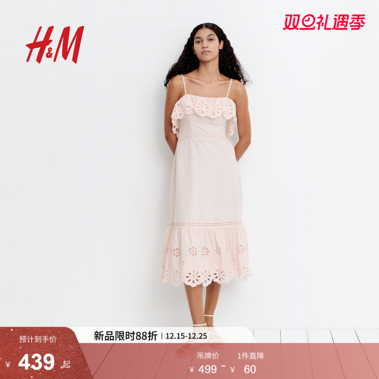 HM女装连衣裙2025冬季新款镂空刺绣棉质印花吊带连身裙1282051
