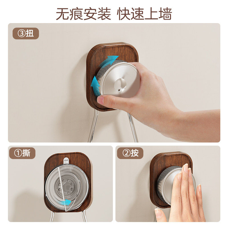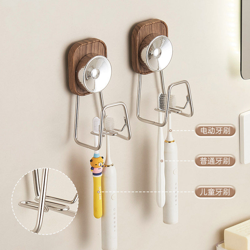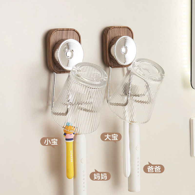 黑胡桃木吸盘电动牙刷杯架卫生间浴室壁挂式漱口家庭牙具牙杯挂架