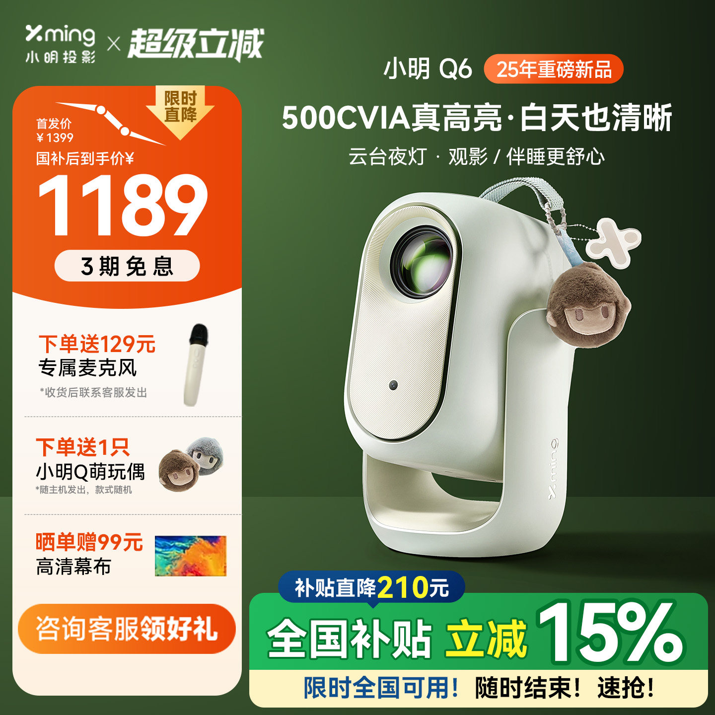【政府补贴全国立减15%】小明Q6投影仪家用超高清可连手机投影机1080P智能4K解码卧室客厅家庭影院2025新款