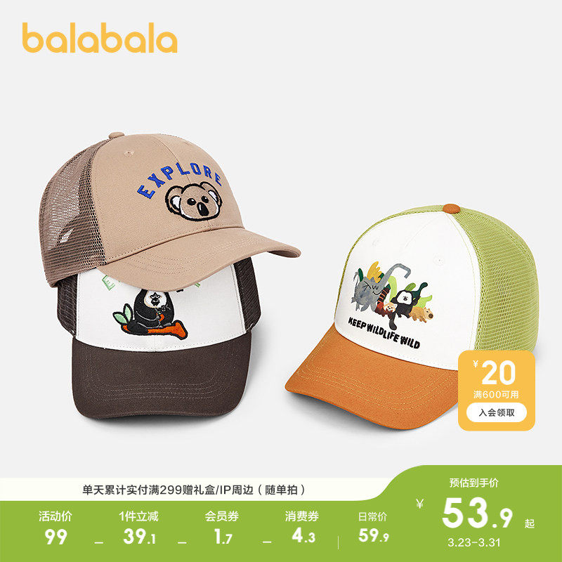 【红山森林动物园IP】巴拉巴拉男童帽子夏季棒球帽遮阳帽潮酷萌趣
