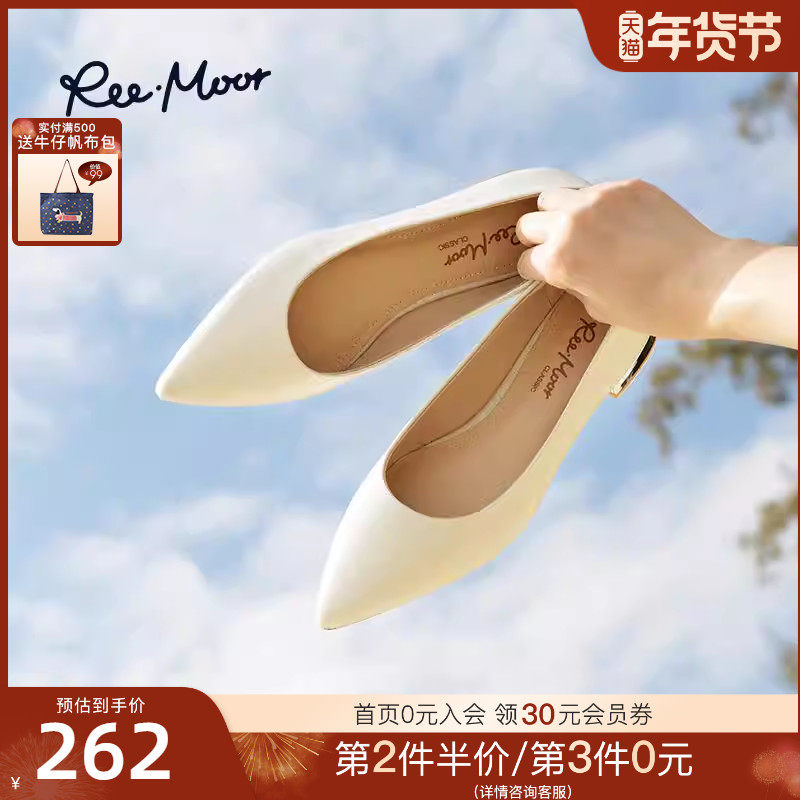 REEMOOR睿慕2025秋季新款气质尖头单鞋纯色浅口通勤增高跟鞋女鞋
