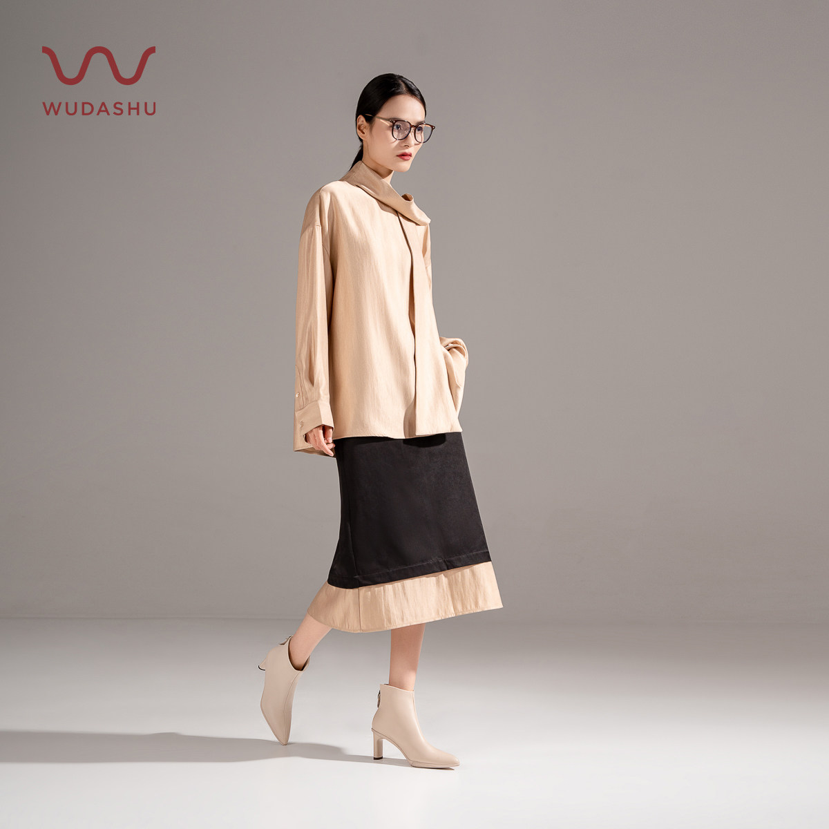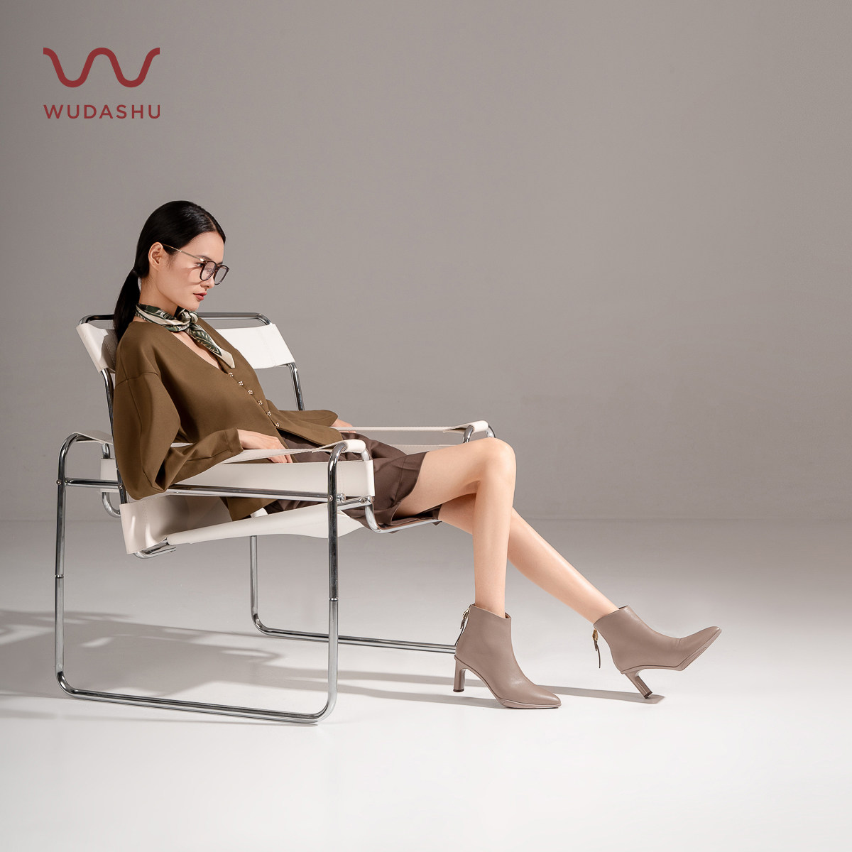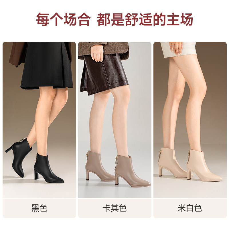 吴大叔高跟靴子2025秋冬季鹅绒靴百搭尖头短靴女通勤舒适时装短靴