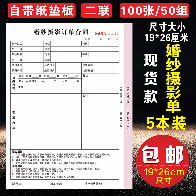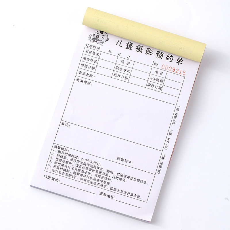 儿童摄影预约流程单婚纱押金收据拍照拍摄取件合同单据影楼订单本