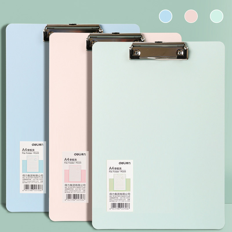 得力文件夹板夹a4夹板马卡龙色系试卷资料A4文件单夹单板学生写字硬板竖板记录垫板简约夹纸板会议讲义报告夹