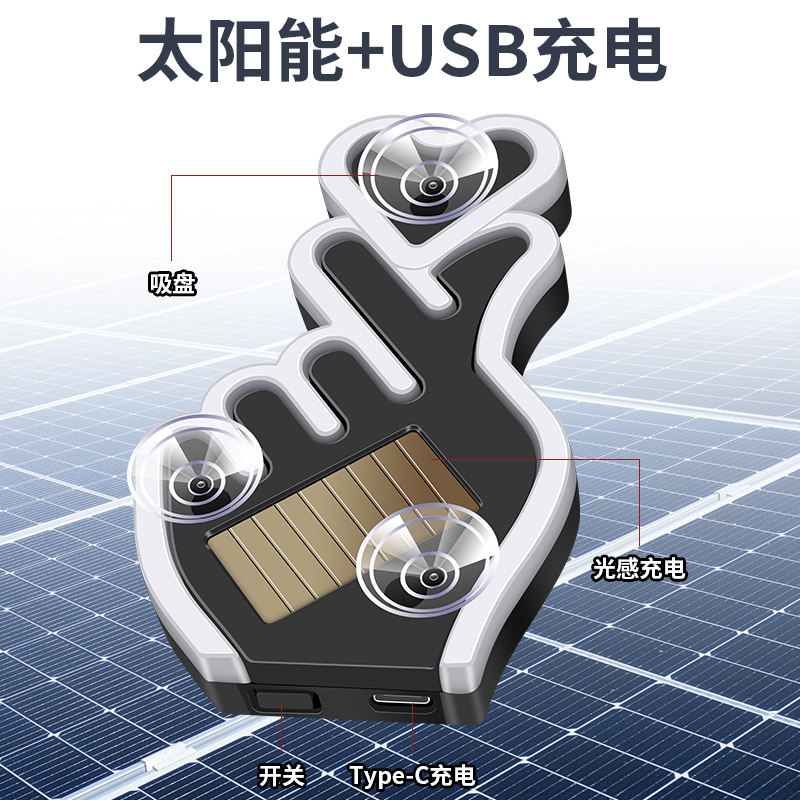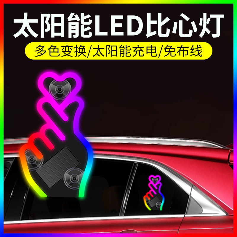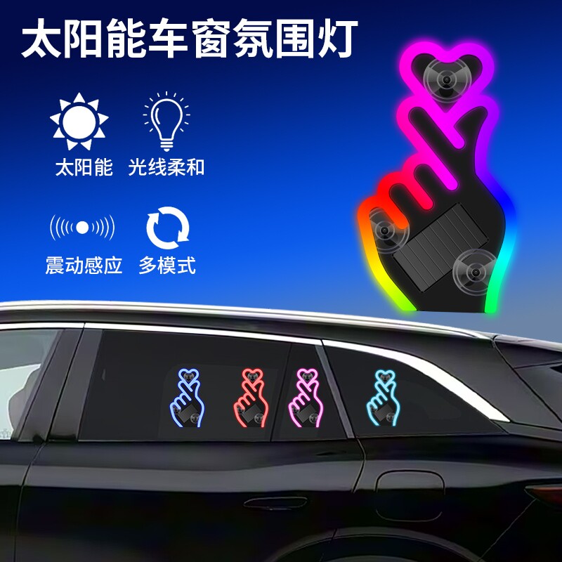 太阳能幻彩比心爱你手势三角窗汽车氛围灯车内免接线无线改装内饰