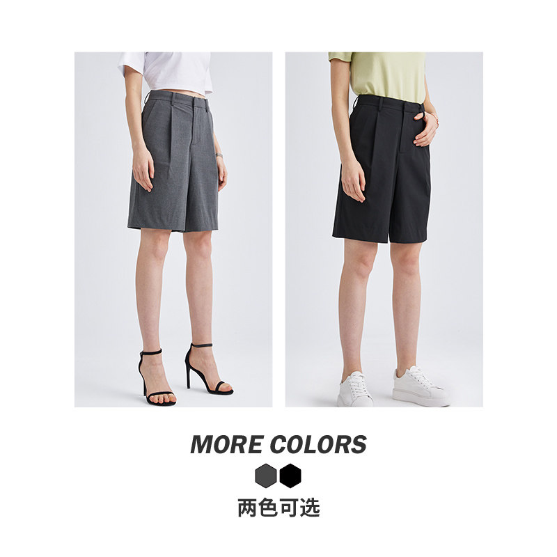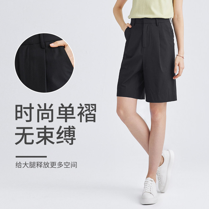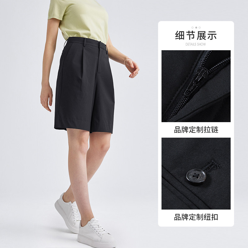 Navigare意大利小帆船黑色高腰宽松西装短裤女夏季薄款休闲五分裤