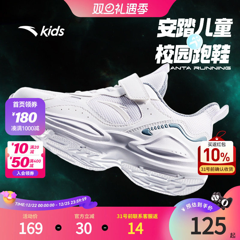 安踏儿童小白鞋2025年秋冬新款大小童跑步鞋子皮面保暖男童运动鞋