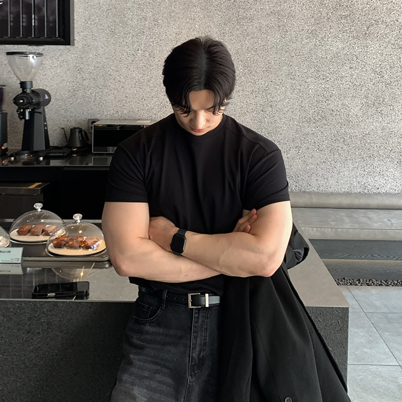 HM男装女装T恤春季透气圆领户外出游运动短袖内搭简约上衣0685816