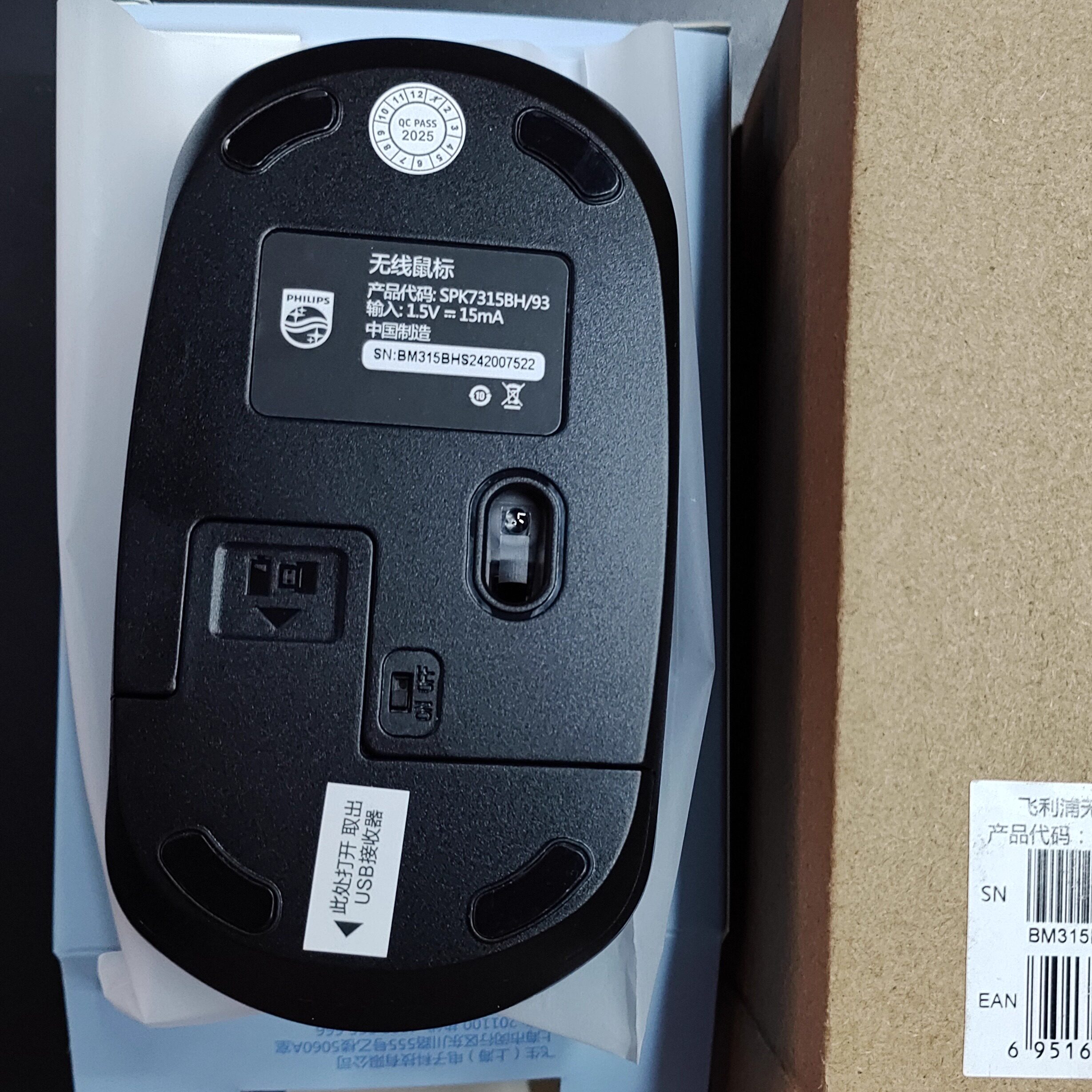 飞利浦7315无线鼠标USB台式笔记本电脑5号电池版序列号版正品盒装