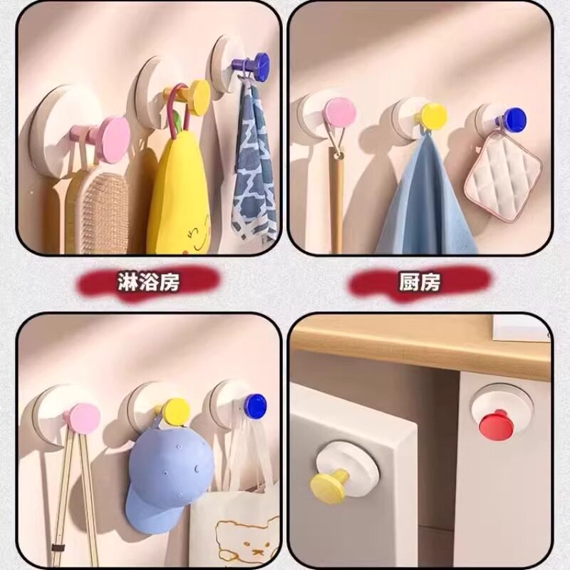 多巴胺色吸盘挂钩粘钩强力承重无痕免打孔创意可爱学生用浴室衣柜