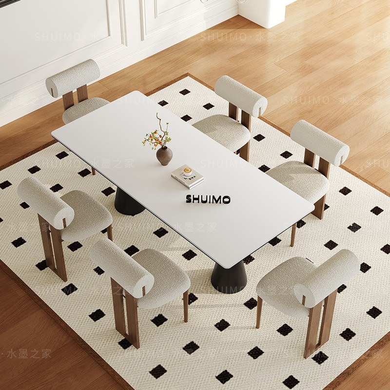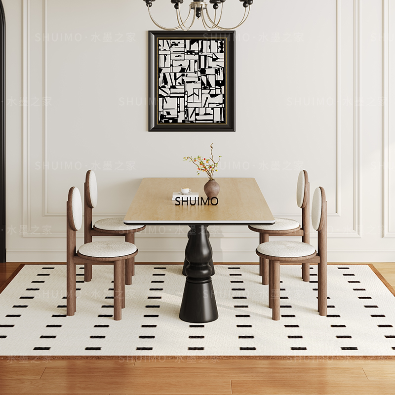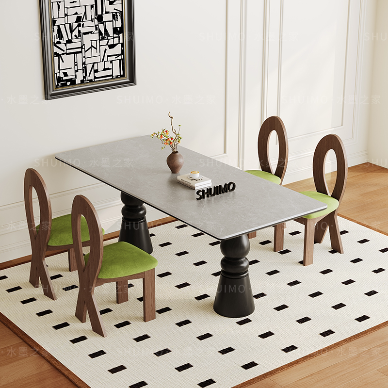复古实木德利丰餐桌长方形设计师款法式中古风饭桌家用高端岩板桌