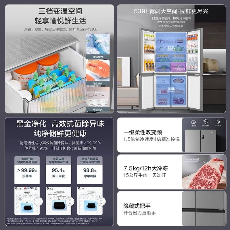 海尔冰箱家用539升大容量可嵌入式十字门无霜四门变频旗舰店正品