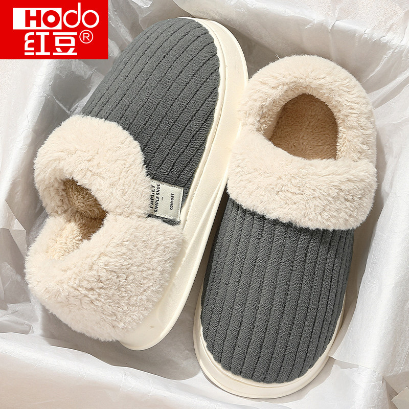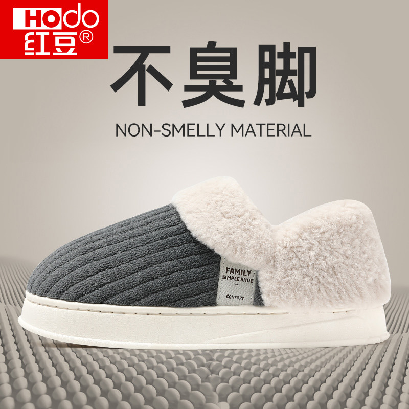 红豆踩屎感棉拖鞋女士秋冬季室内家居2025新款毛绒保暖情侣棉拖男