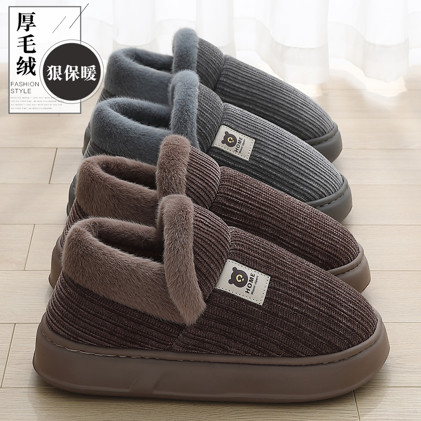 2026新款翻半包跟棉拖加绒保暖情侣外穿毛毛绒厚底防滑居家棉拖鞋