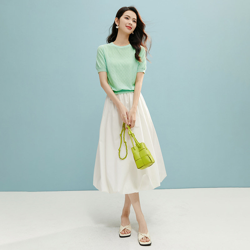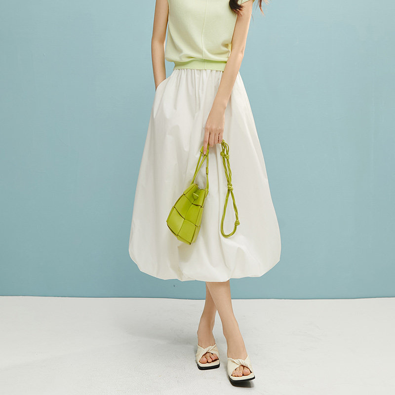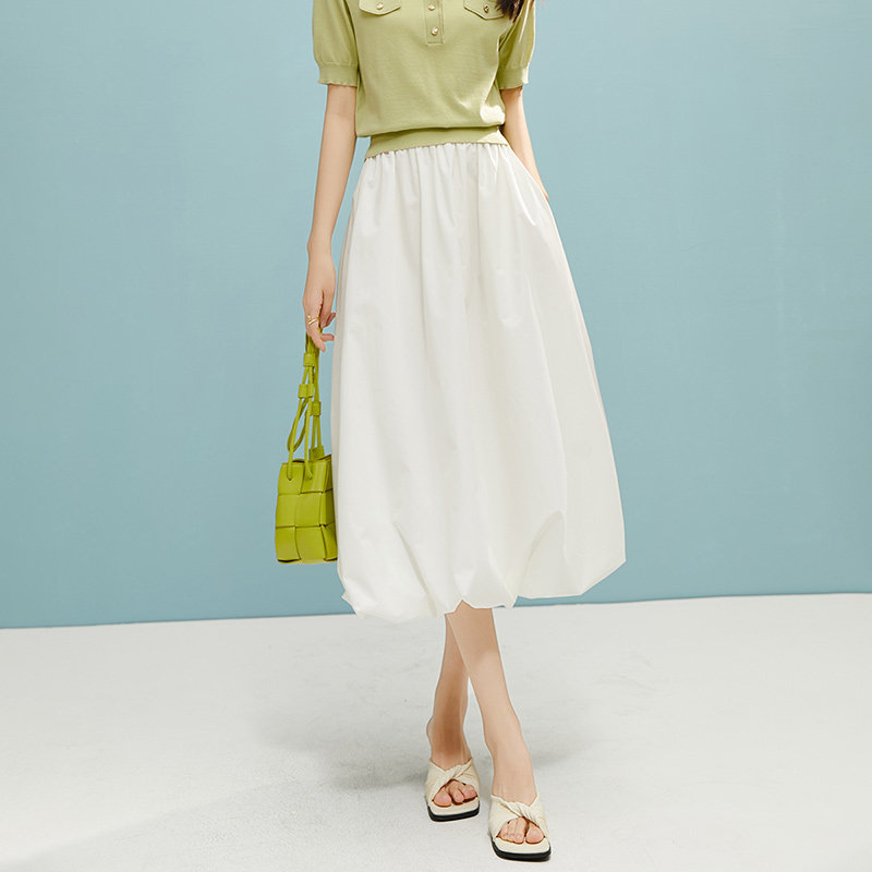 晚白2026春季云朵蓬蓬半裙休闲a字棉质花苞裙白色半身裙女