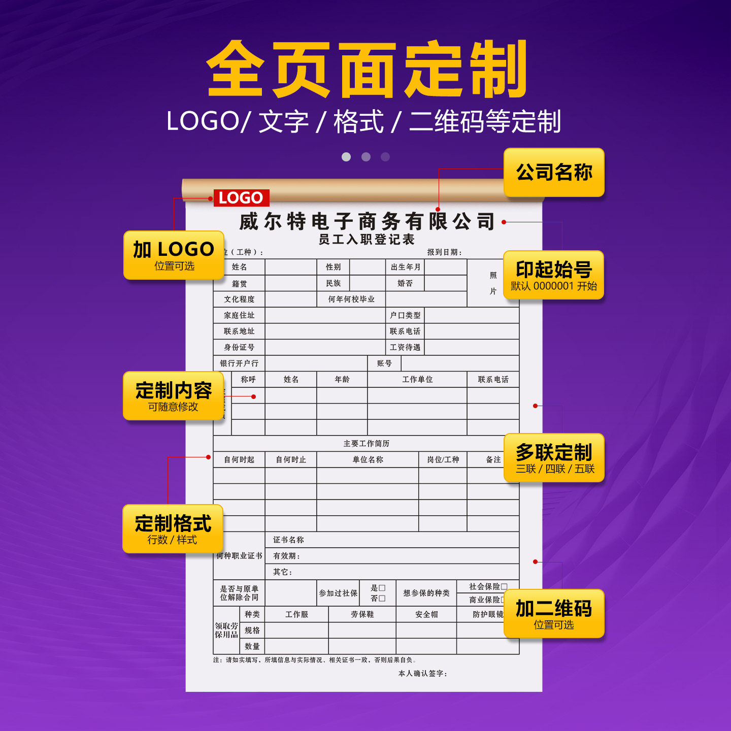 【电商专用员工入职登记表】定制电子商务公司人事招聘简历表格网店客服面试信息档案申请表职工考勤签到台账