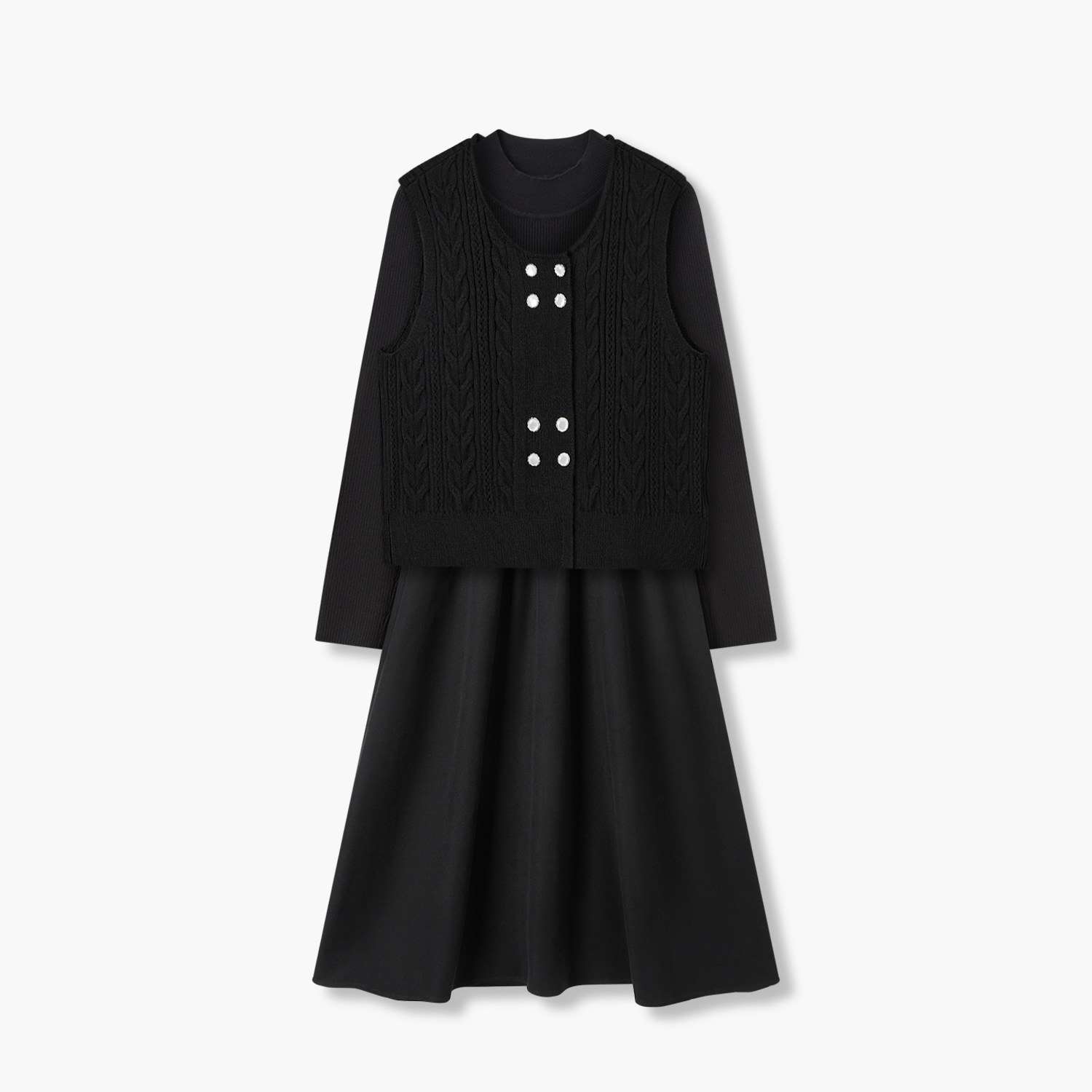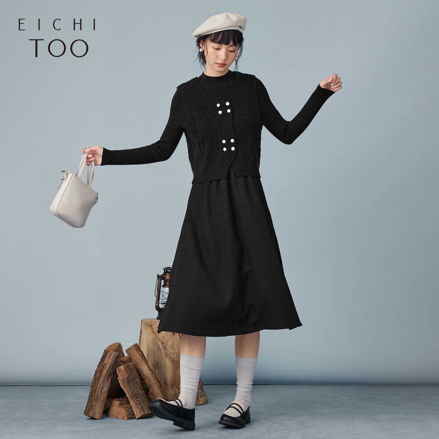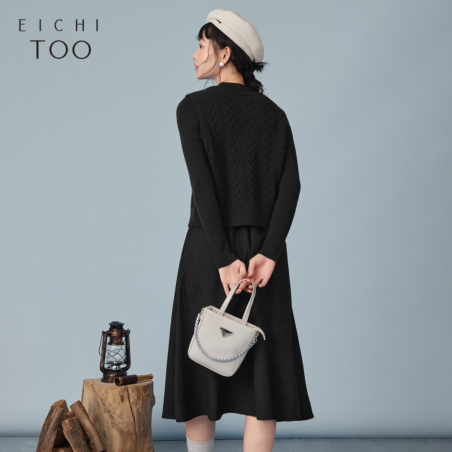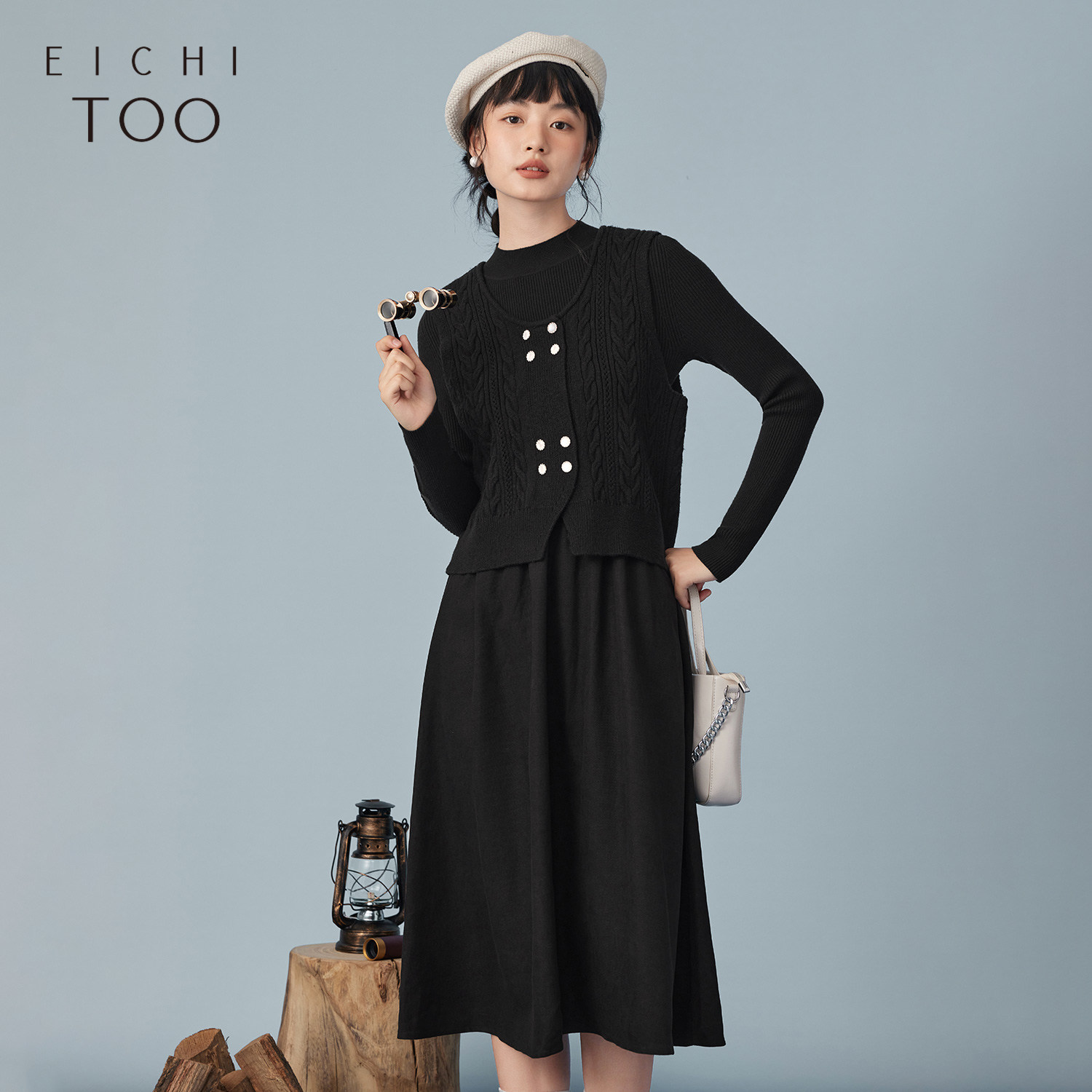 爱居兔冬季新款柔软舒适复古时尚针织衫两件套连衣裙