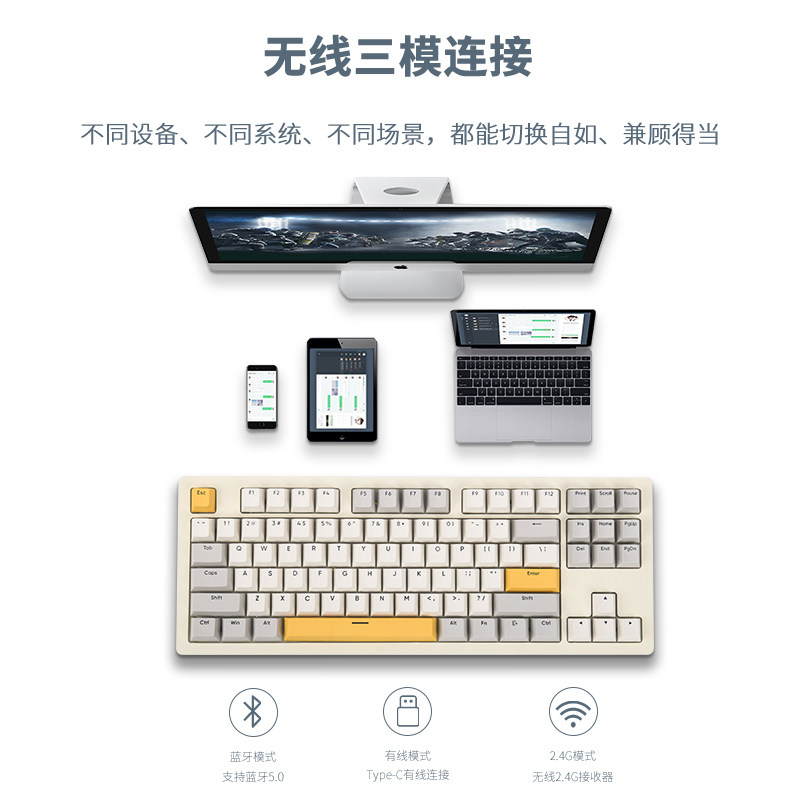 黑爵AKC087千层酥热插拔三模蓝牙机械键盘套件游戏镂空格栅结构