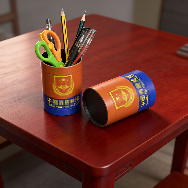消防员创意文具精品时尚铅笔圆珠笔桶uv彩印铝合金可定制笔筒办公