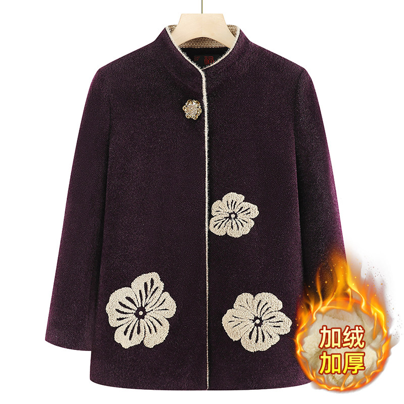 中老年人冬装女外套奶奶加绒加厚妈妈装保暖衣秋冬上衣老太太大衣