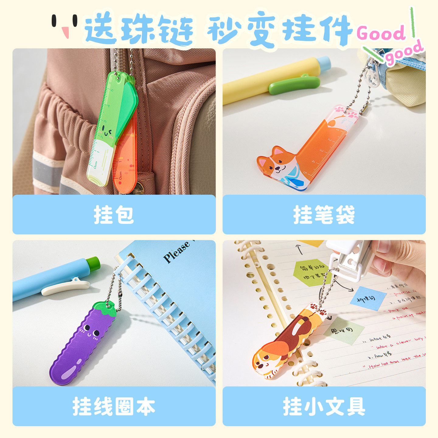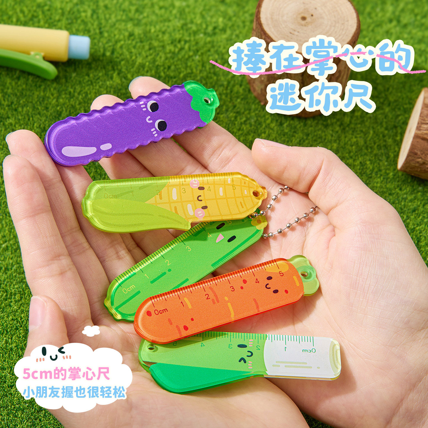三年二班 小尺大王掌心尺迷你5cm小学生专用diy尺子套装蔬菜狗狗高颜值幼儿园小尺子直尺手抄报格尺二三年级