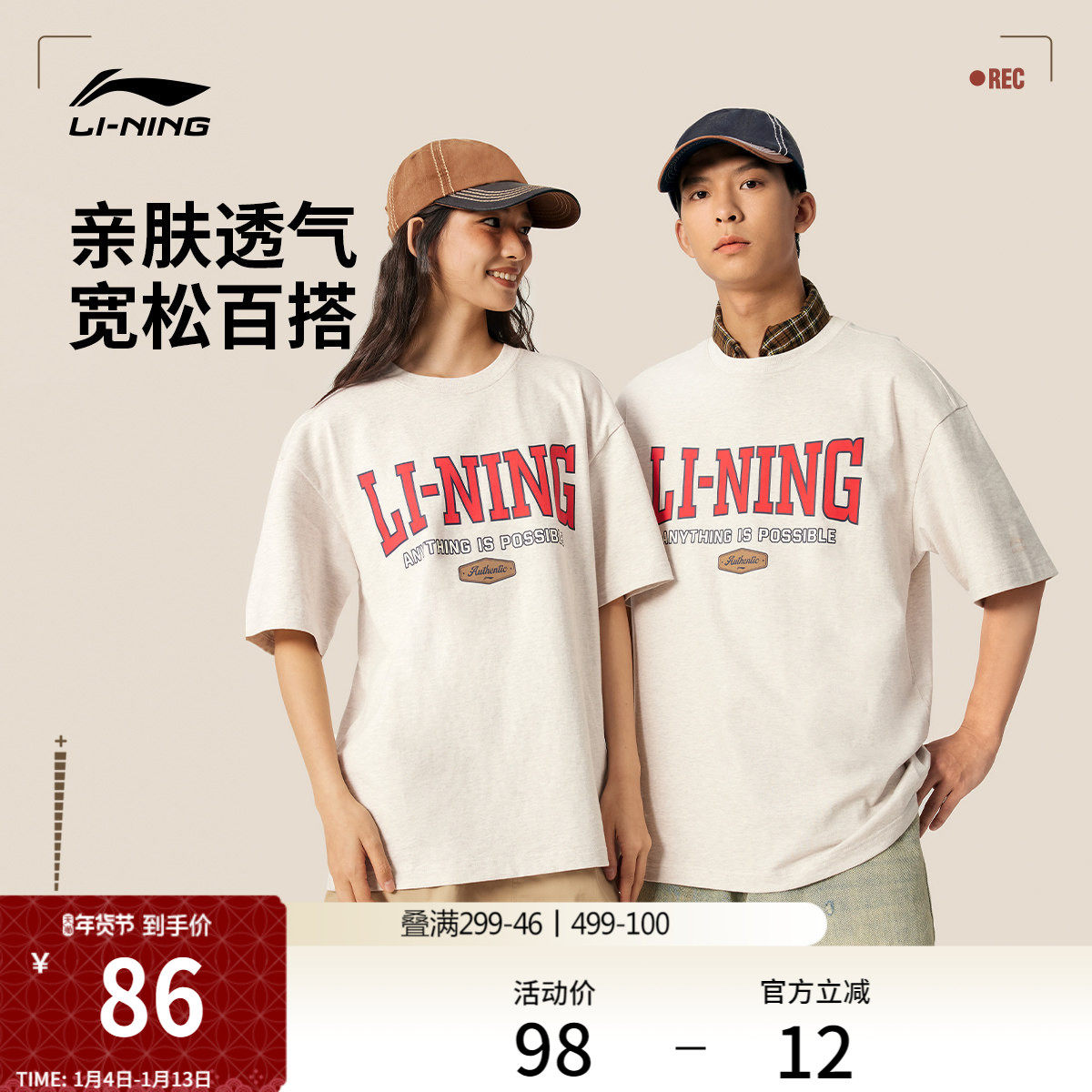 李宁短袖男夏季官方新款情侣半袖圆领休闲体恤宽松上衣运动T恤女