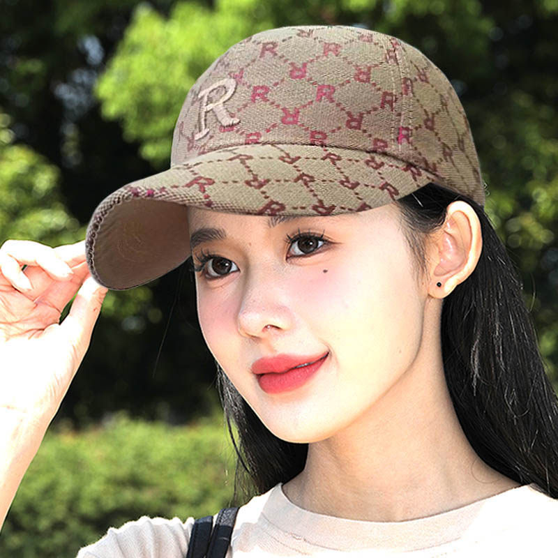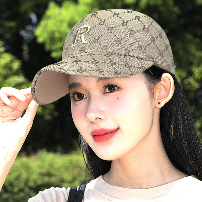 棒球帽女R字刺绣洋气百搭鸭舌帽户外学生可调节新款防晒遮阳帽