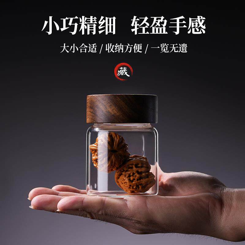 文玩密封玻璃罐沉香瓶子手串核桃收纳盒养香罐养珠存香展示储存罐