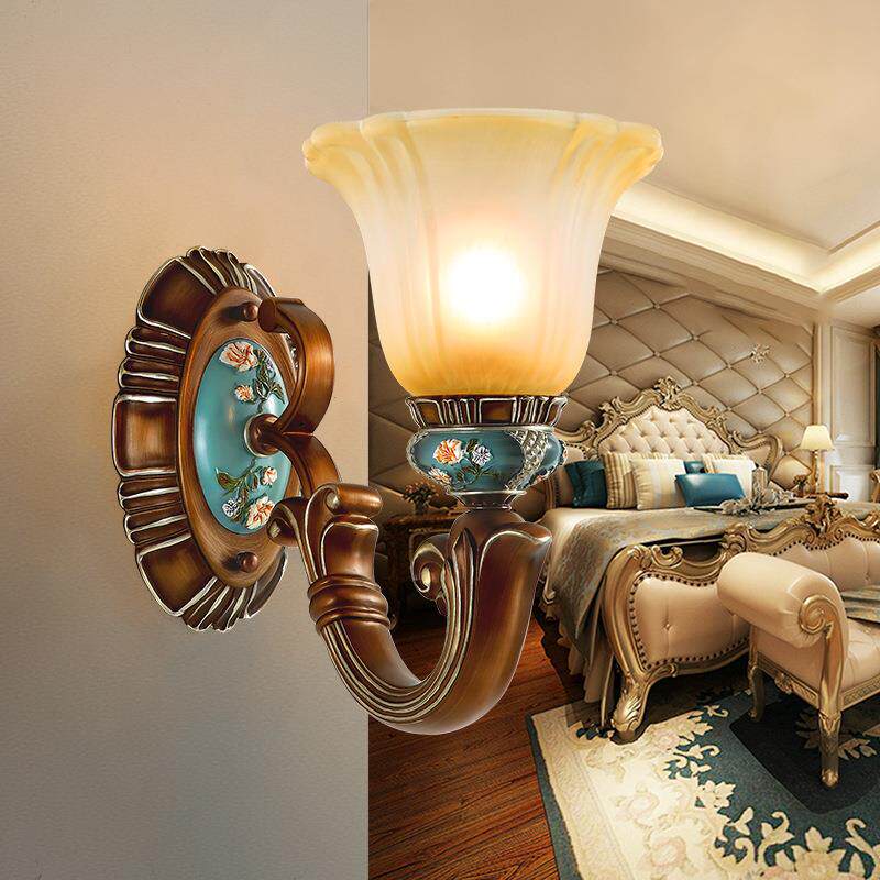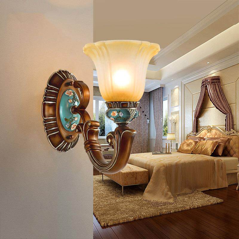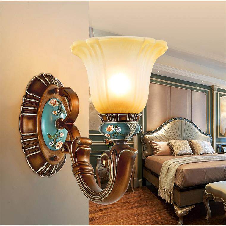 欧式壁灯客厅电视墙家用复古奢华别墅单双头卧室床头灯树脂过道灯