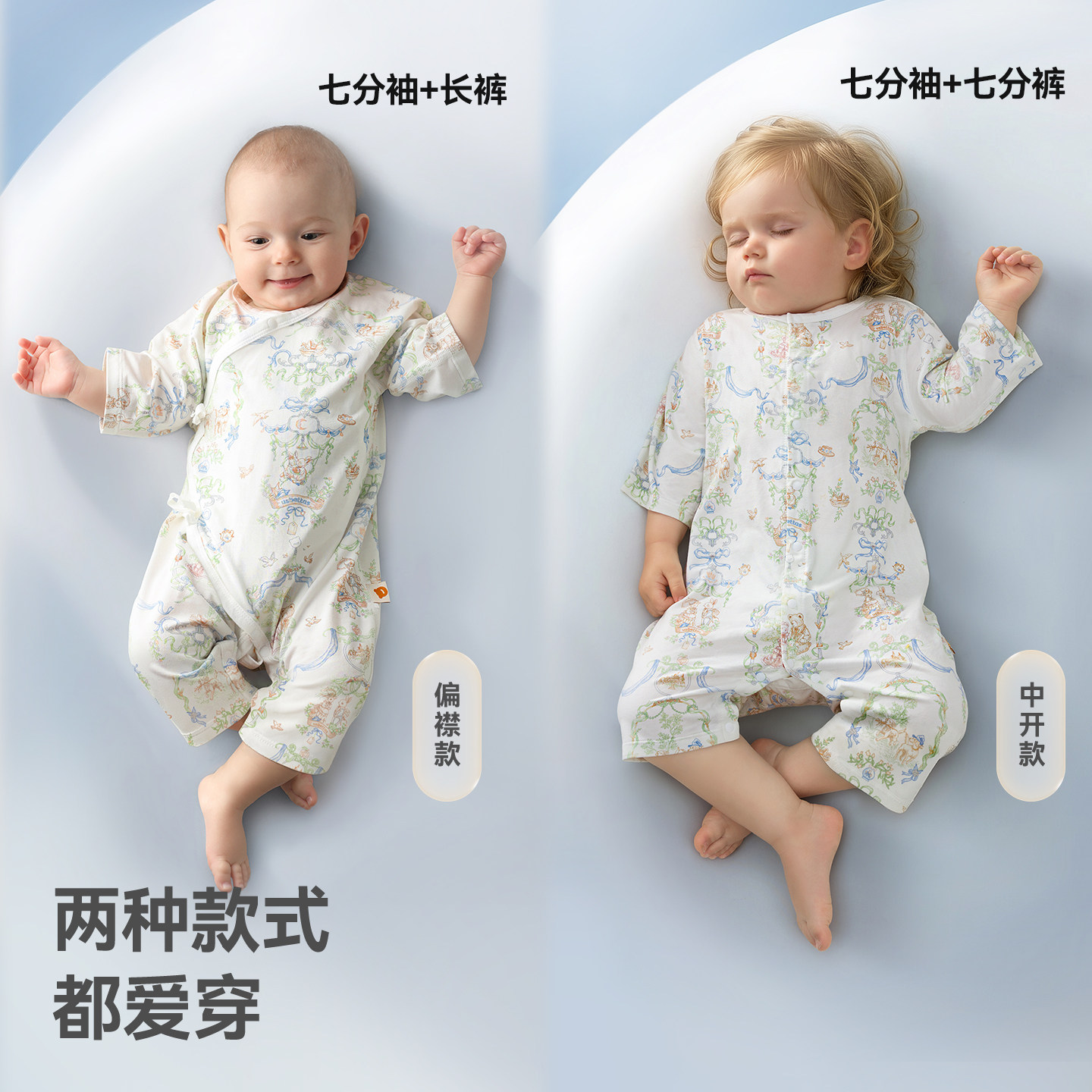 欧孕婴儿连体衣春装长袖新生男女宝宝纯棉哈衣睡衣夏季空调服爬服