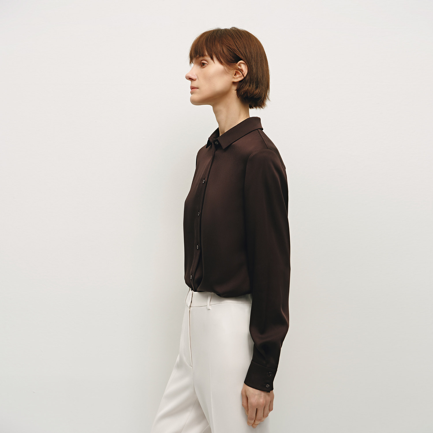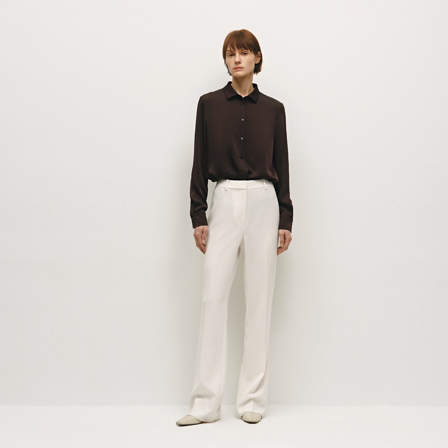 OVVOutlet秋冬热卖女装简约缎面多色经典易搭基础长袖休闲衬衫
