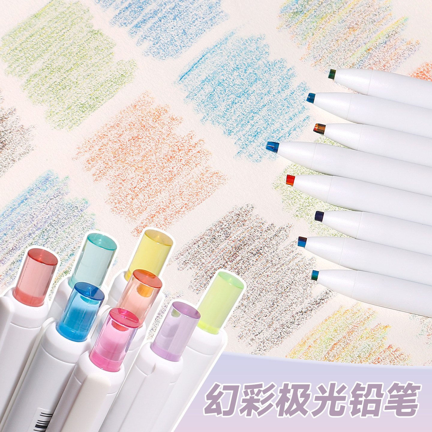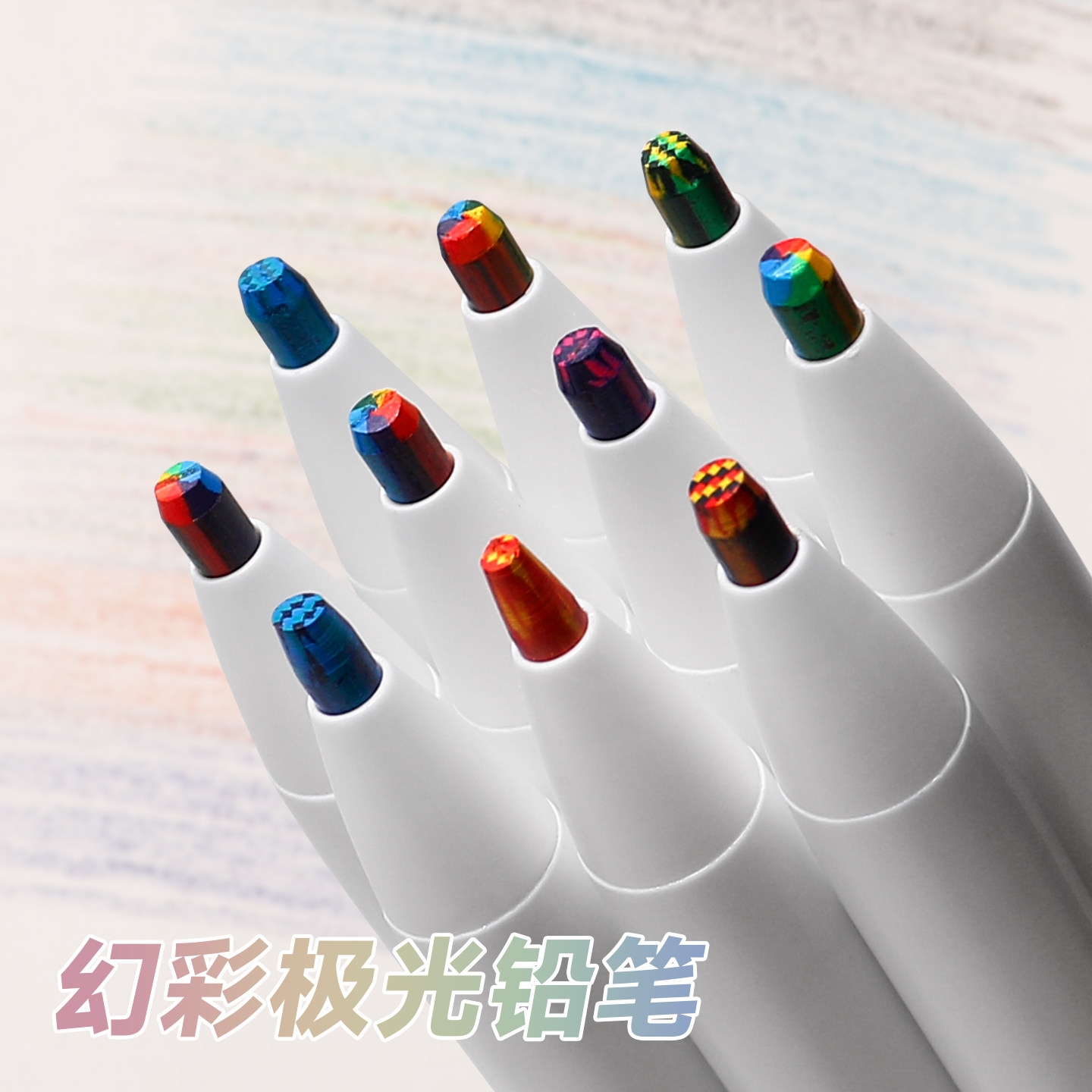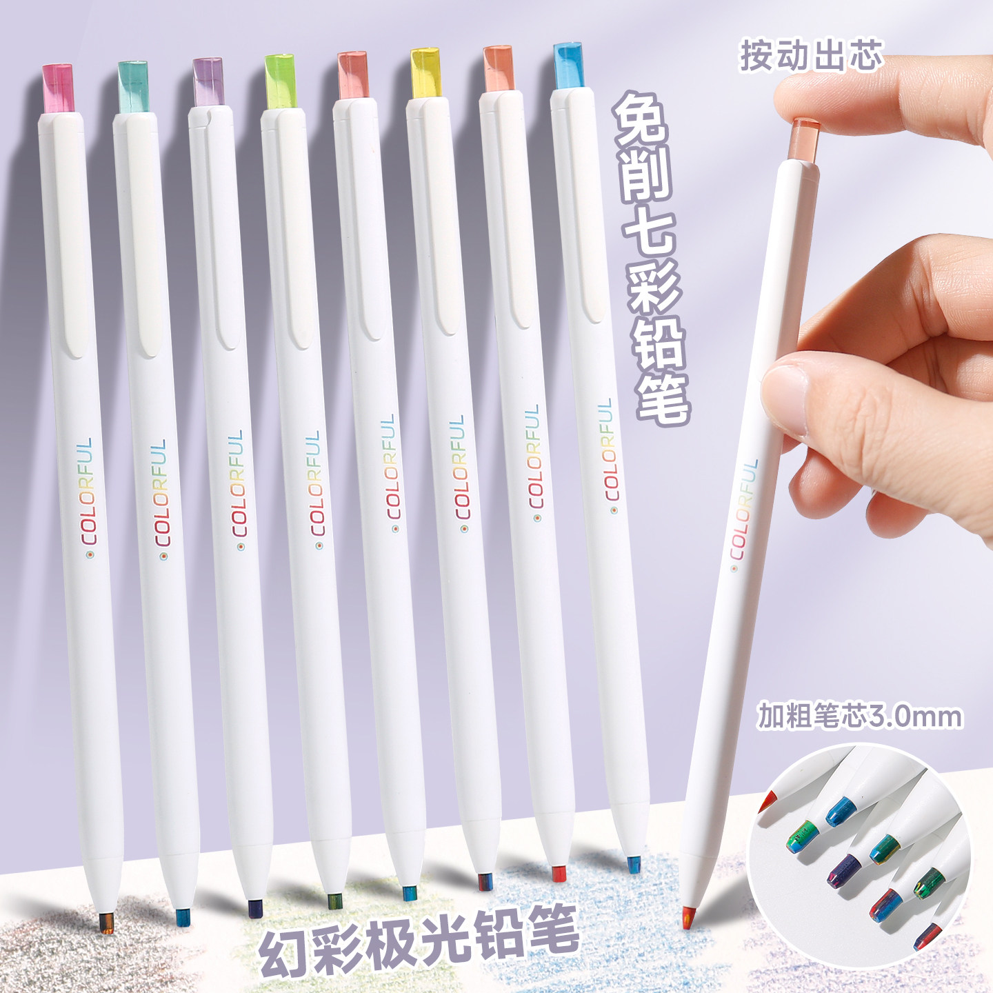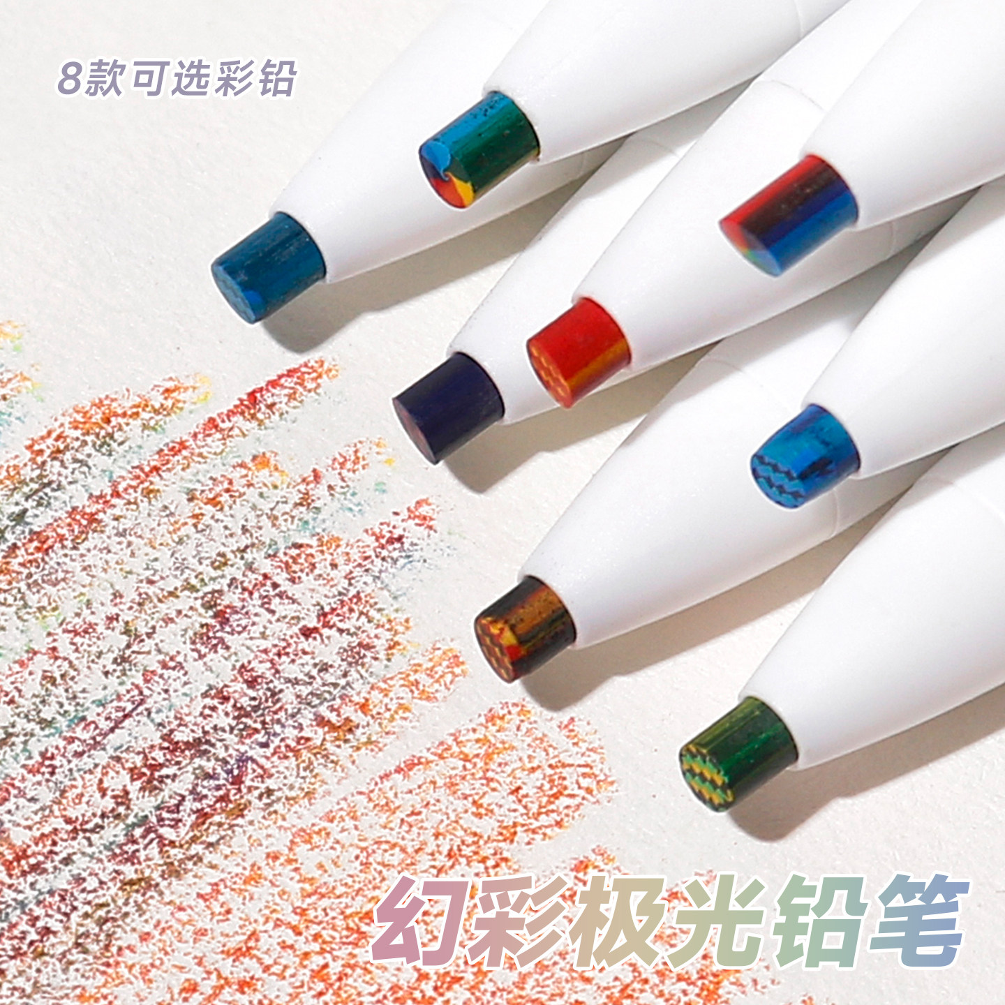 彩色绘画梦幻彩铅笔学生儿童免削自动铅笔一笔多色彩虹色活动铅笔