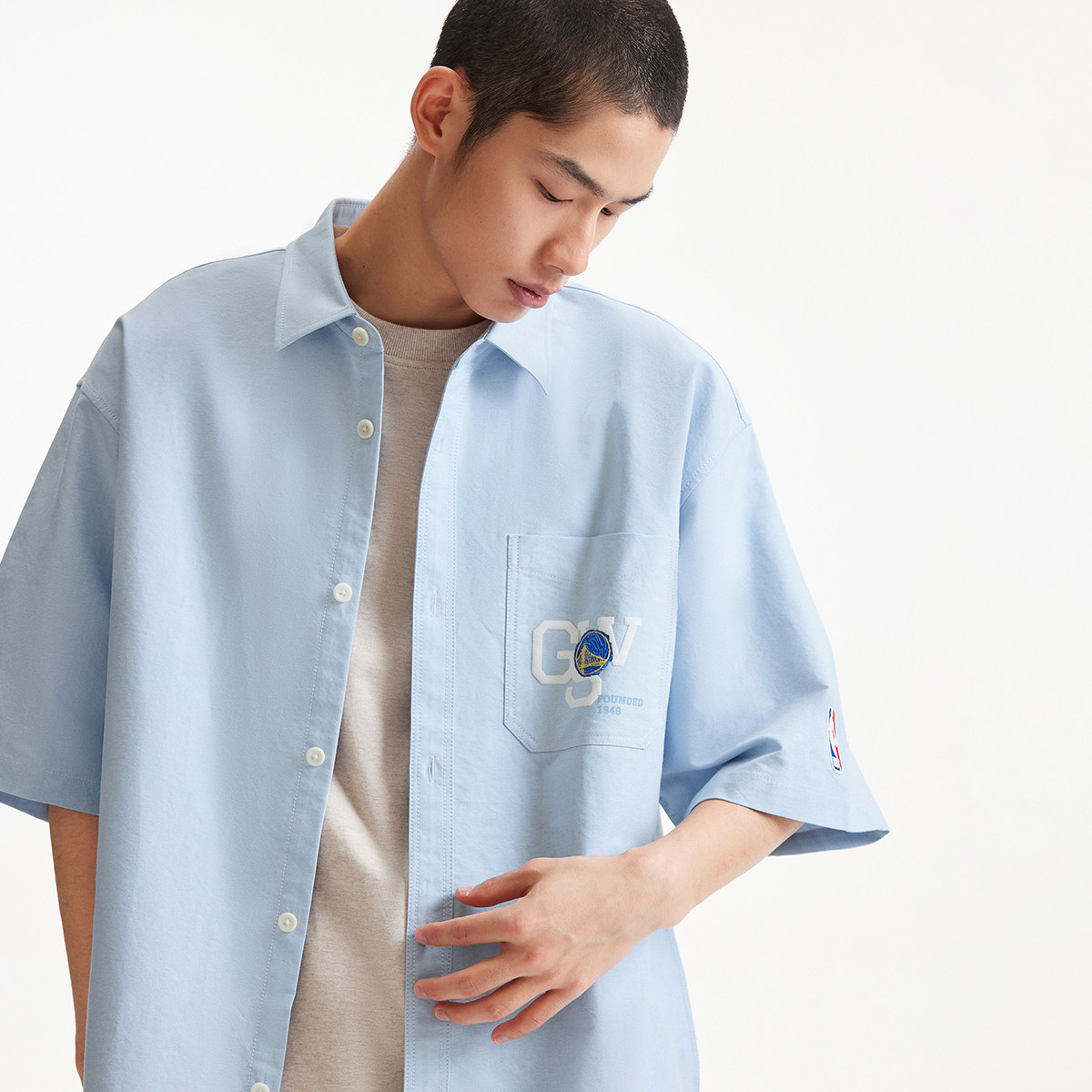 略宽松版 尖领 纽扣门襟 NBA金州勇士队联名